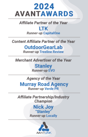 Setiap tahun, Avantlink mengevaluasi kemitraan pemasaran afiliasi untuk mengakui mereka yang unggul sebagai pemimpin industri. Kami senang mengumumkan pemenang Avantawards 2024!